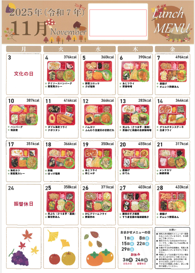 11月のランチメニューを公開しました。